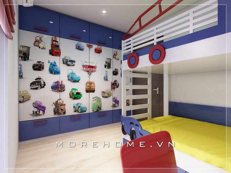 Tủ quần áo gỗ công nghiệp Acrylic kết hợp những họa tiết ngộ nghĩnh, phù hợp với bất kì một không gian phòng ngủ bé trai nào